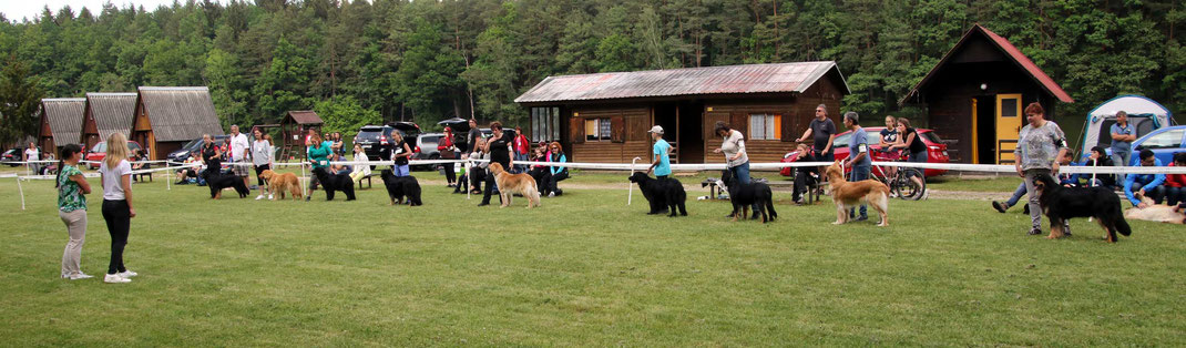 Wir sind dann am 19. Mai in Begleitung von Vera und Slávek (Fanclub und Dolmetscher) nach Tábor gefahren. Das Ausstellungsgelände war sehr schön, das Wetter auch. Insgesamt waren 141 Hovawarte gemeldet, 59 Rüden und 82 Hündinnen. Die Rüden wurden vom Spezialzuchtrichter Michael Kunze und die Hündinnen von der Spezialzuchtrichterin Brit Wuchert gerichtet.