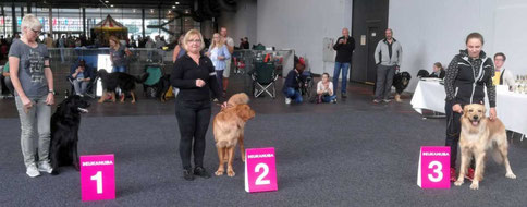 Olik wurde am Wochenende auf der Rassehundeausstellung in Bremen an beiden Tagen sehr erfolgreich in der Jugendklasse ausgestellt. Bei der Internationalen Rassehundeausstellung am Samstag bekam er von der Spezialzuchtrichterin Eveline Hohmann ein sehr gut 1.