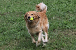 Das Highlight für sie ist das Suchen des Leckerli-Beutels, der immer mal wieder "verloren" geht. Jule saust dann 50 bis 100 Meter den Weg zurück und kommt mit dem Leckerli-Beutel im Maul zurück. Das macht ihr einen Heidenspaß, nicht nur weil es immer ein Leckerli zur Belohnung gibt.