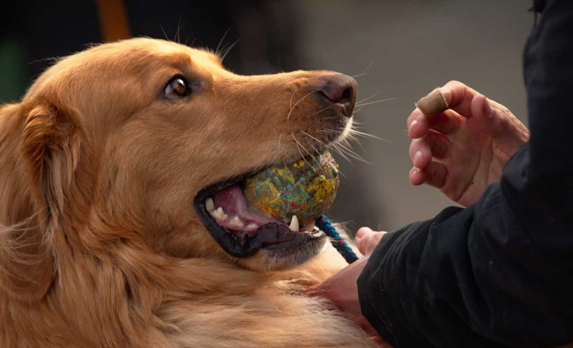 Niemand von uns wirft weich gespülte Wattebäusche, denn der Hund findet sie uninteressant. Aber eine Beißwurst, die dürfen wir gerne aus der Tausche zaubern. Mit der Beute zergeln, das macht auch das Frauli glücklich.